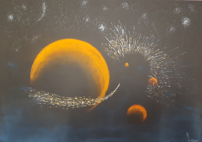 Konturfarbe-Pastell-Mischtechnik 70x50 cm 2002
